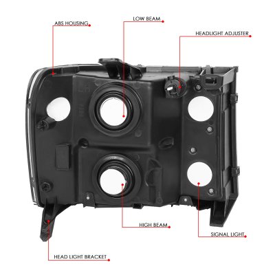 This GMC Sierra 3500HD Euro Headlights will fit 2007, 2008, 2009, 2010, 2011, 2012, 2013, 2014 GMC Sierra 3500HD. Replace or upgrade your GMC Sierra 3500HD Euro Headlights with our GMC Sierra 3500HD 2007-2014 Black Headlights.