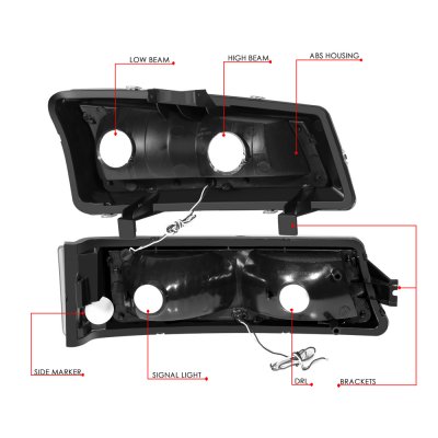 This Chevy Silverado 2500 Euro Headlights will fit 2003, 2004 Chevy Silverado 2500. Replace or upgrade your Chevy Silverado 2500 Euro Headlights with our Chevy Silverado 2500 2003-2004 Black LED DRL Headlights Bumper Lights N2.