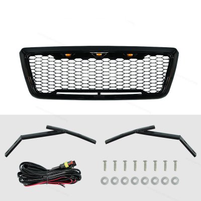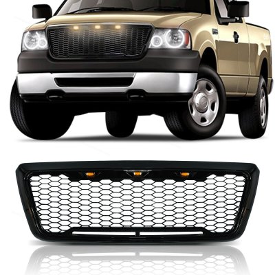 This Ford F150 Front Grill will fit 2004, 2005, 2006, 2007, 2008 Ford F150. Ford F150 2004-2008 Black Front LED DRL Grille also features Glossy Black finish. Replace or upgrade your Ford F150 Front Grill with our Ford F150 2004-2008 Black Front LED DRL Grille.