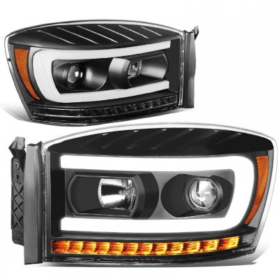 This Dodge Ram Projector Headlights will fit 2006, 2007, 2008 Dodge Ram. Dodge Ram 2006-2008 Black DRL Projector Headlights Dynamic Signals also features Black housing Clear lens, Low beam H1, High Beam H1. Replace or upgrade your Dodge Ram Projector Headlights with our Dodge Ram 2006-2008 Black DRL Projector Headlights Dynamic Signals.