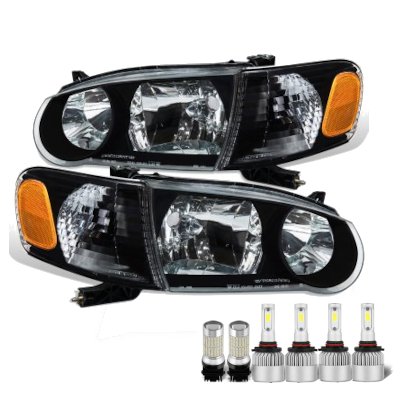 This Toyota Corolla LED Headlights will fit 2001, 2002 Toyota Corolla. Toyota Corolla 2001-2002 Black LED Headlight Bulbs Set Complete Kit also features LED Headlight Bulbs Included. Replace or upgrade your Toyota Corolla LED Headlights with our Toyota Corolla 2001-2002 Black LED Headlight Bulbs Set Complete Kit.