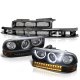 2002 Chevy S10 Black Grille LED Halo Projector Headlights Set