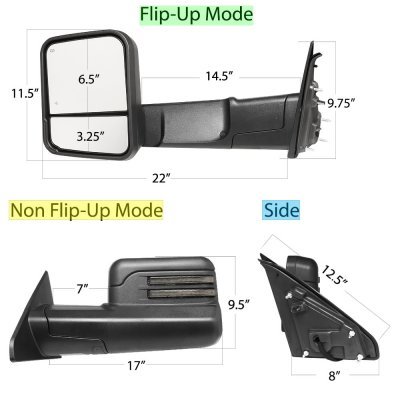 This Dodge Ram 2500 Towing Mirrors will fit 2010, 2011, 2012, 2013, 2014, 2015, 2016, 2017, 2018 Dodge Ram 2500. Dodge Ram 2500 2010-2018 New Tow Mirrors LED Signal Lights also features Power Mirror Angle Adjustment, Heated Mirror, Integrated LED Turn Signal Lights, LED Puddle Lights, Include Temperature Sensor, Manual Extension, Manual Folding. Replace or upgrade your Dodge Ram 2500 Towing Mirrors with our Dodge Ram 2500 2010-2018 New Tow Mirrors LED Signal Lights.